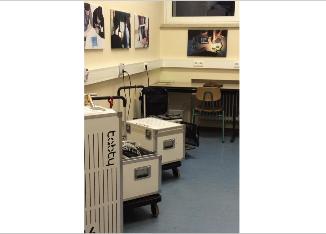 Die Geräte müssen sicher aufbewahrt und der Transport in das Klassenzimmer muss an die baulichen Voraussetzungen angepasst werden (Transportlösung, Aufzug).
