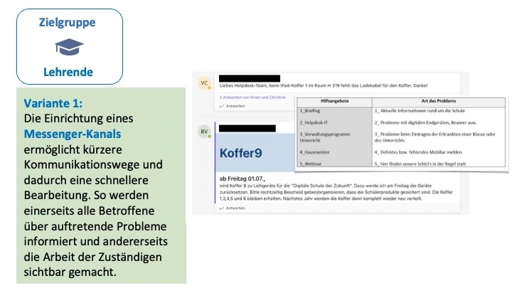 Das Einarbeitungskonzept für Lernende und Lehrende sowie etablierte Unterstützungsmaßnahmen im Beschaffungsprozess bilden eine Grundlage für eine Weiterentwicklung des Unterstützungskonzeptes.