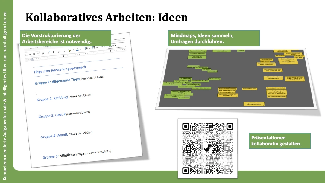 Der Einsatz von Lernplattformen, Cloudspeichern oder kollaborativen Anwendungen vereinfacht das Teilen und Kommentieren von Arbeitsergebnissen erheblich. So erhalten Lernende die Möglichkeit, ihre eigenen Ideen durch die vertiefte Beschäftigung mit den Resultaten anderer zu festigen und weiterzuentwickeln. Zudem profitieren sie von authentischem und konstruktivem Feedback durch ihre Mitschüler.