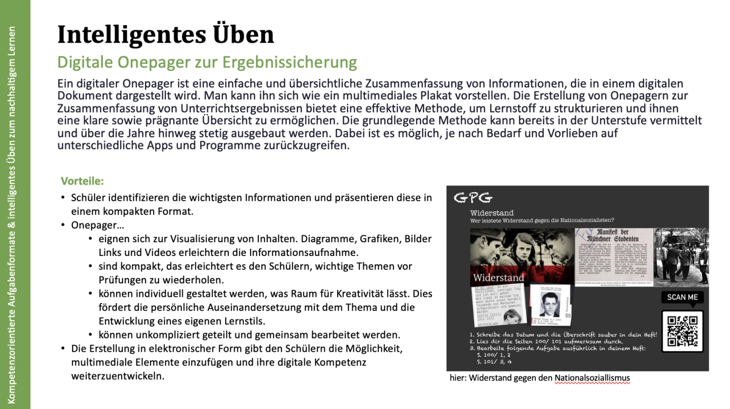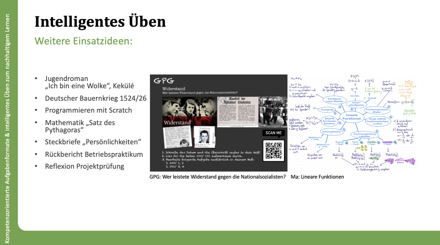 Der Vorteil digitaler Medien bei der Sicherung von Unterrichtsinhalten besteht darin, Vernetzungen und Querverbindungen zu anderen Themen oder Jahrgangsstufen einfacher herzustellen. Statt isoliertes Faktenwissen zu lernen, können Zusammenhänge besser erkannt und gefestigt werden. So ist es beispielsweise möglich, Hefteinträge, die digital gesichert werden, sowohl in Folgestunden als auch zu einem viel späteren Zeitpunkt wieder aufzugreifen und zu erweitern. Dies fördert das vernetzte Denken und das Bewusstsein, das Lernen als lebenslänglichen und kontinuierlichen Prozess wahrzunehmen.+