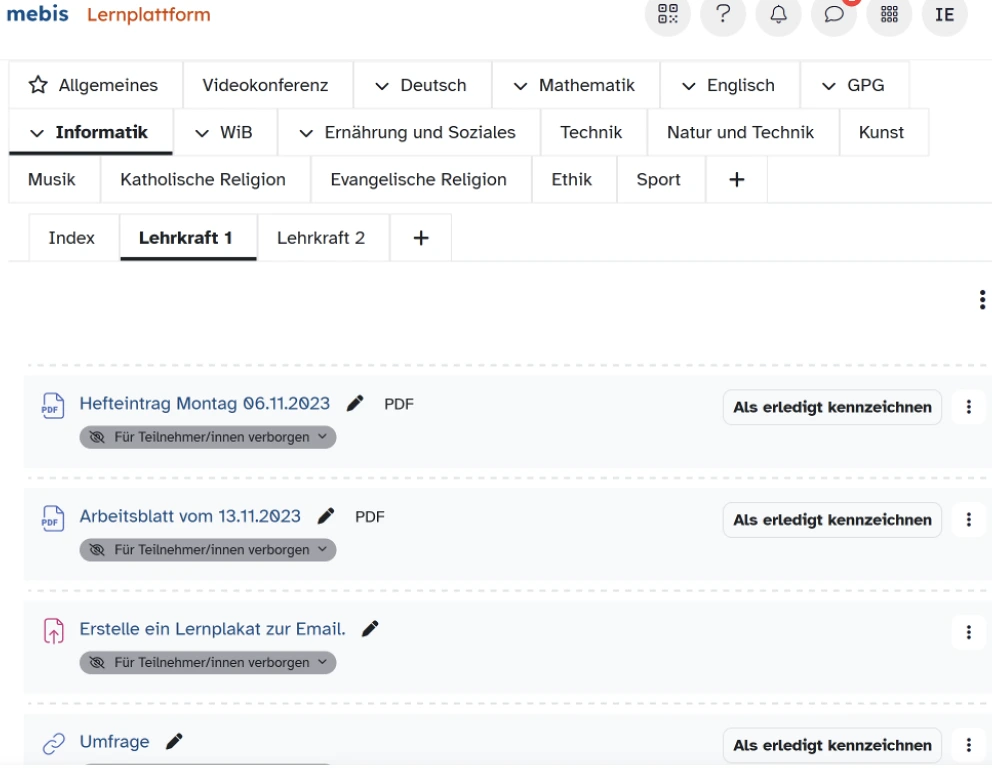 Mithilfe digitaler Anwendungen, wie Lernplattformen, Pinnwänden oder interaktiven Arbeitsblättern, können unterschiedliche Materialien – darunter Audios, Videos, PDF-Dateien, bearbeitbare Tabellen, externe Links und Arbeitsanweisungen – strukturiert bereitgestellt werden.