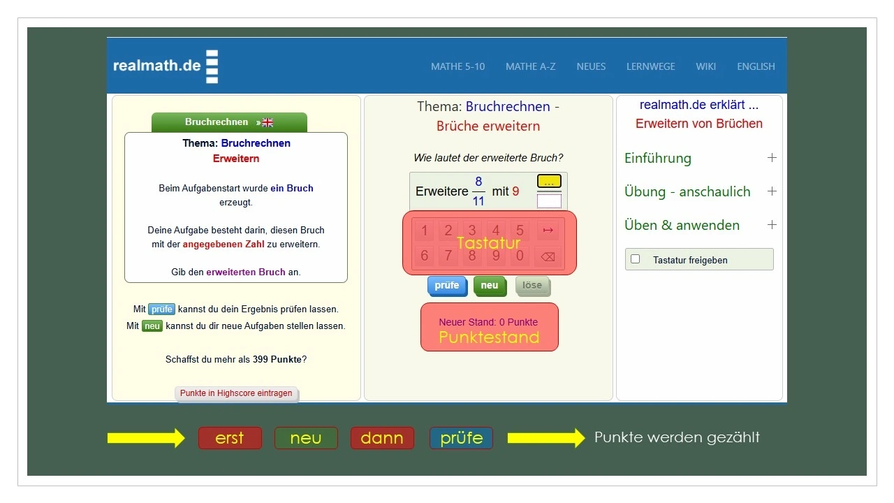 Wiederholung und Erarbeitung mithilfe eines interaktiven Rechners