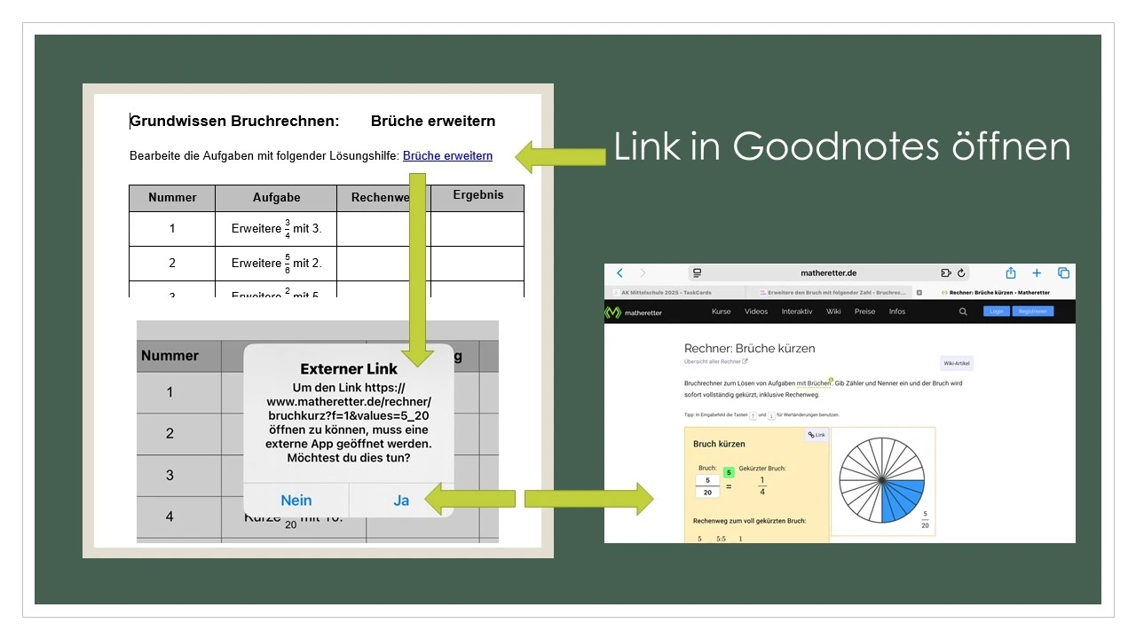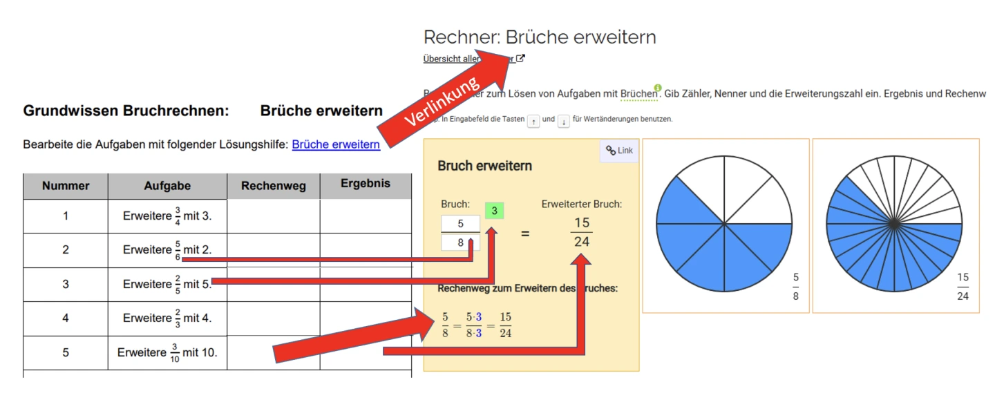 Material: Arbeitsblatt in einer Notizapp mit Verlinkung zum interaktiven Rechner