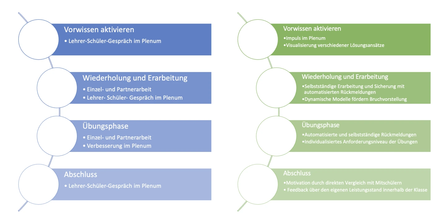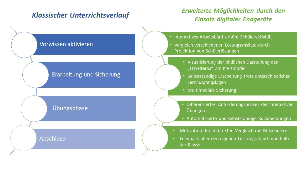 Sorgfältig aufbereitete, leicht zugängliche digitale Materialien, kombiniert mit etablierten Routinen und vorab eingeübten Bedienkompetenzen, fördern einen effektiven Unterrichtsablauf und eine kontinuierliche Auseinandersetzung mit den Lerninhalten.