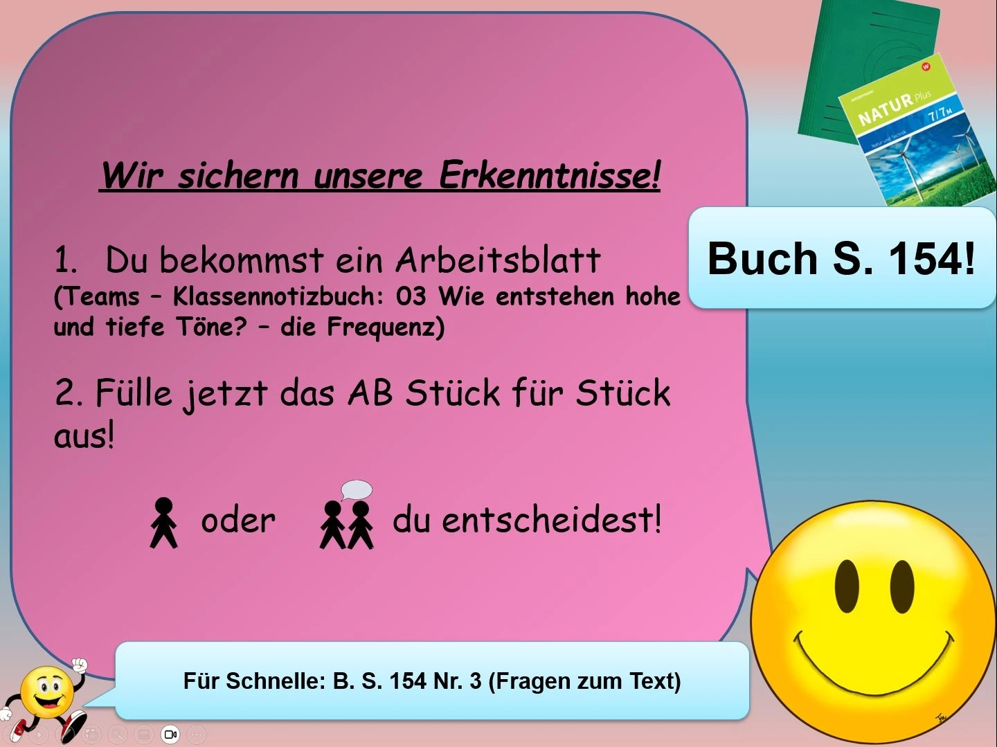 In der Präsentation werden der Arbeitsauftrag und der Verweis auf das digitale Heft mit dem bereits hochgeladenen Arbeitsblatt eingeblendet. Die SuS lösen das AB mit Hilfe ihres Buches und wiederholen, sichern und vertiefen dabei ihr Wissen der aktuellen Einheit. -
