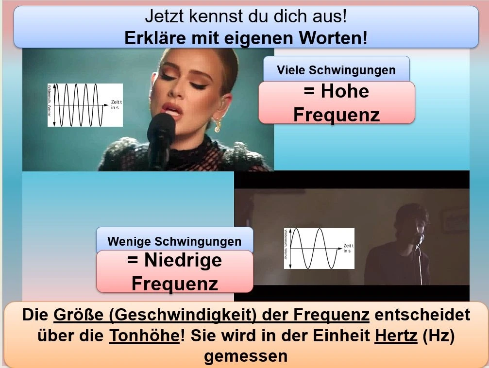 Thema: Die Größe der Frequenz (Anzahl der Schwingungen) bestimmt die Tonhöhe und wird in Hertz (Hz) angegeben