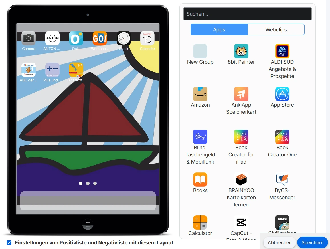 Für den Einsatz der Geräte im Unterricht sind bestimmte Anwendungen erforderlich, während andere, bereits vorinstallierte Anwendungen viel Ablenkungspotential bieten und ausgeblendet werden sollten. Ein einheitliches Layout, wie die Anordnung der Anwendungen oder das Einblenden des Gerätenamens im Sperrbildschirm, kann den Einsatz im Unterricht erleichtern. Dies sind Beispiele für eine sinnvolle Gerätekonfiguration.