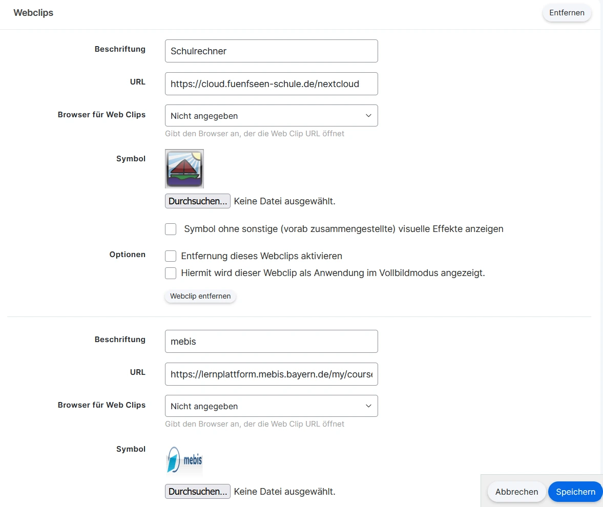 Beispiel: Ab der Klasse 5 erhalten die Schüler personalisierte Geräte; davor stehen Poolgeräte zur Verfügung. Die Konfigurationsprofile der Schule für die Poollösung und die personalisierten Geräte sind prinzipiell ähnlich aufgebaut und richten sich nach den oben genannten Anforderungen für die Förderschule. Unterschiede zeigen sich in folgenden Punkten: