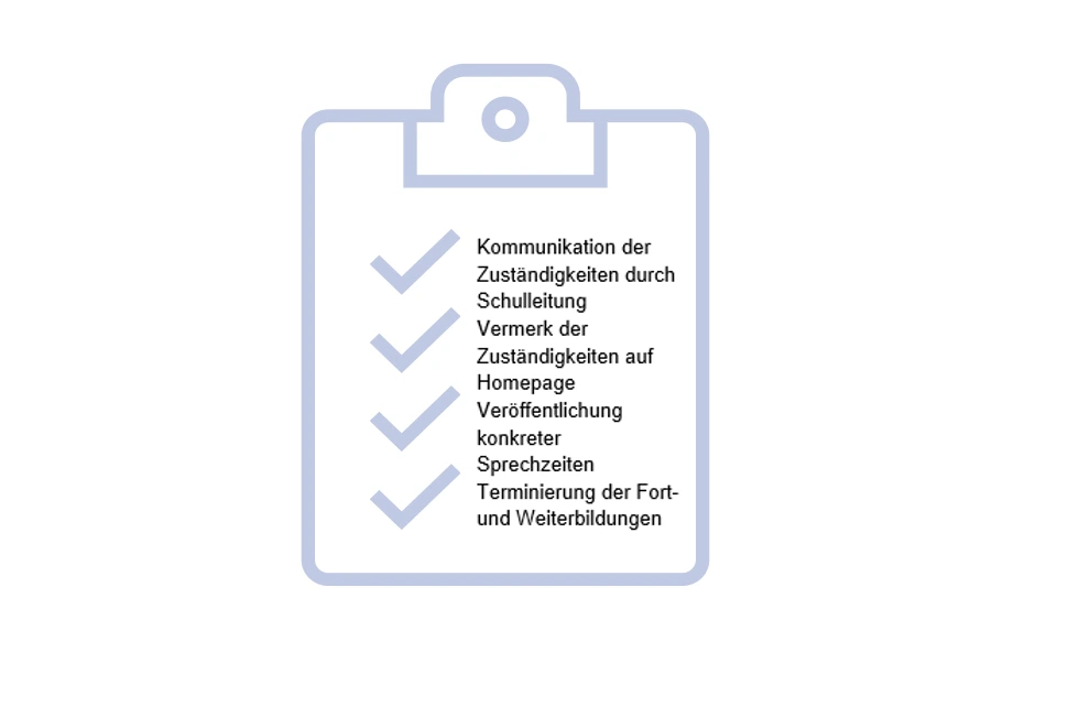 Sinnvoll ist, diese Unterstützungsmaßnahmen in bestehende schulinterne Strukturen und in den Schulentwicklungsprozess organisch einzubinden. Um Kontinuität und Flexibilität zu gewährleisten, bietet sich ein regelmäßiger wertschätzender Austausch mit Verantwortlichen und Beteiligten an.