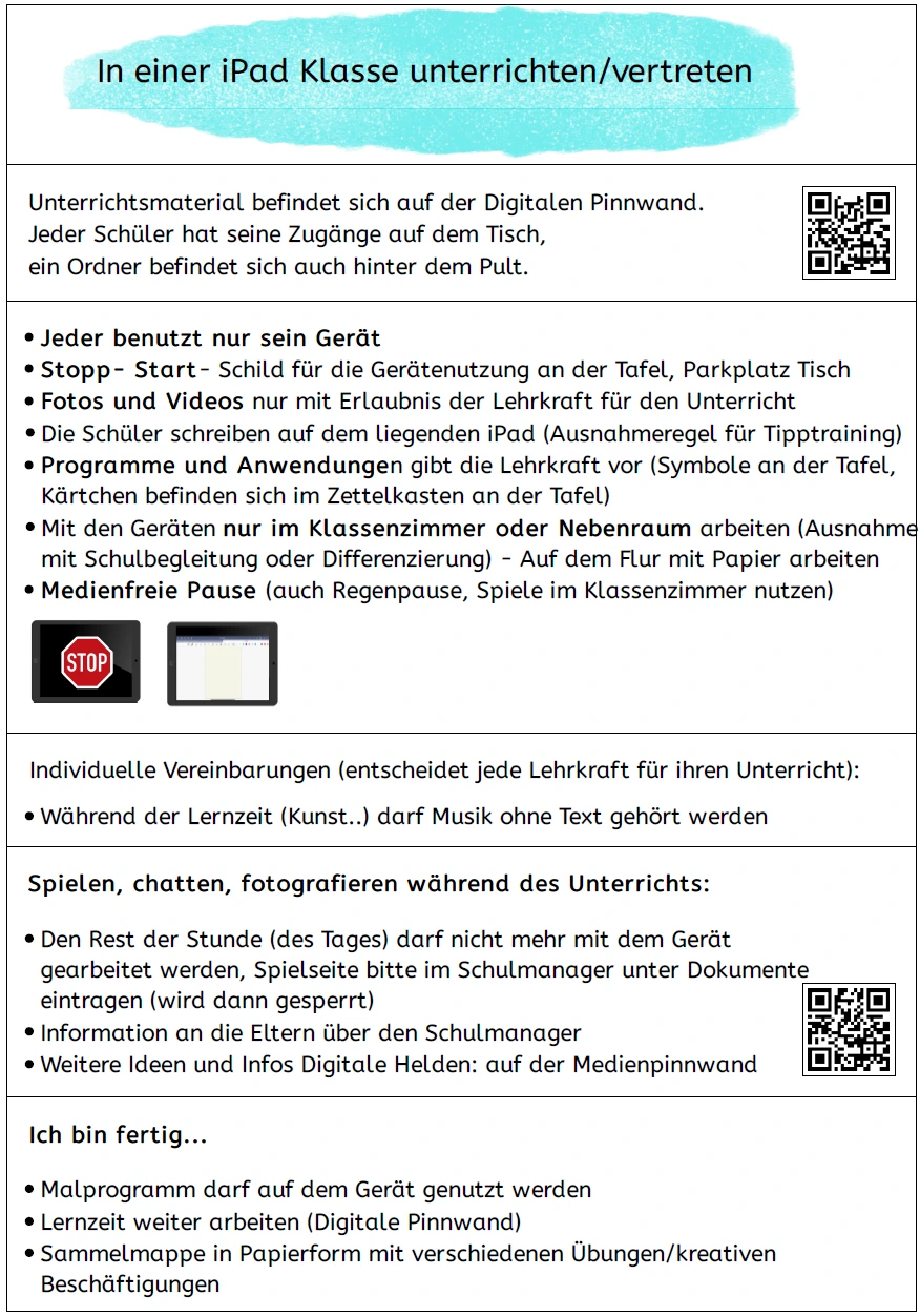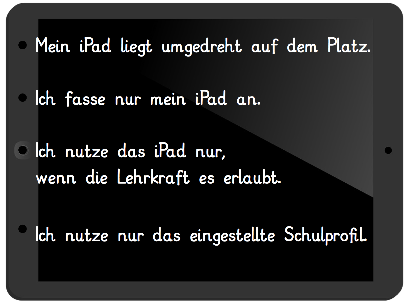 Regelverstöße wird es immer geben, da die Möglichkeiten, die Tablets bieten, für Lernende zu verlockend sind, um sie nicht ausprobieren zu wollen. Daher ist es wichtig, innerhalb der Schulgemeinschaft über Interventionsmaßnahmen und der Intensität deren Regulierung Absprachen zu treffen. Welchen Grad der Regulierung sich eine Schule wünscht, hängt von verschiedenen Bedürfnissen und Gegebenheiten ab und sollte im Vorfeld gemeinsam festgelegt werden, zum Beispiel im Rahmen der Lehrkräfteschulung. In jedem Fall ist es aber notwendig, den Lehrkräften einen Überblick über die rechtlichen Grundlagen im Umgang mit den privaten Geräten zu vermitteln.