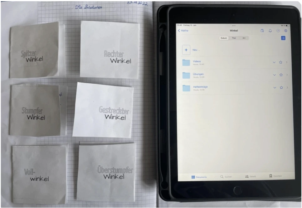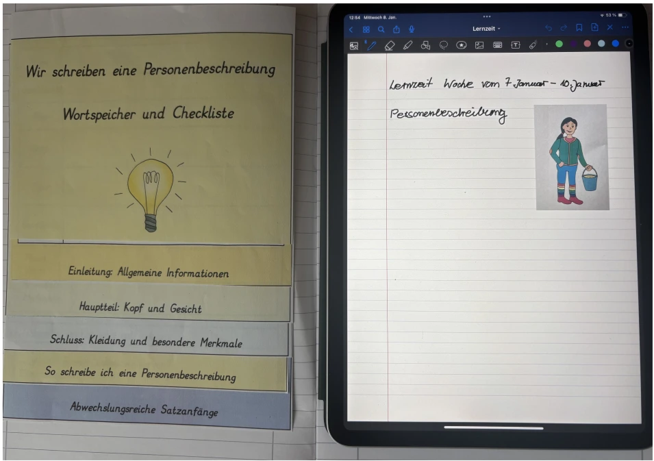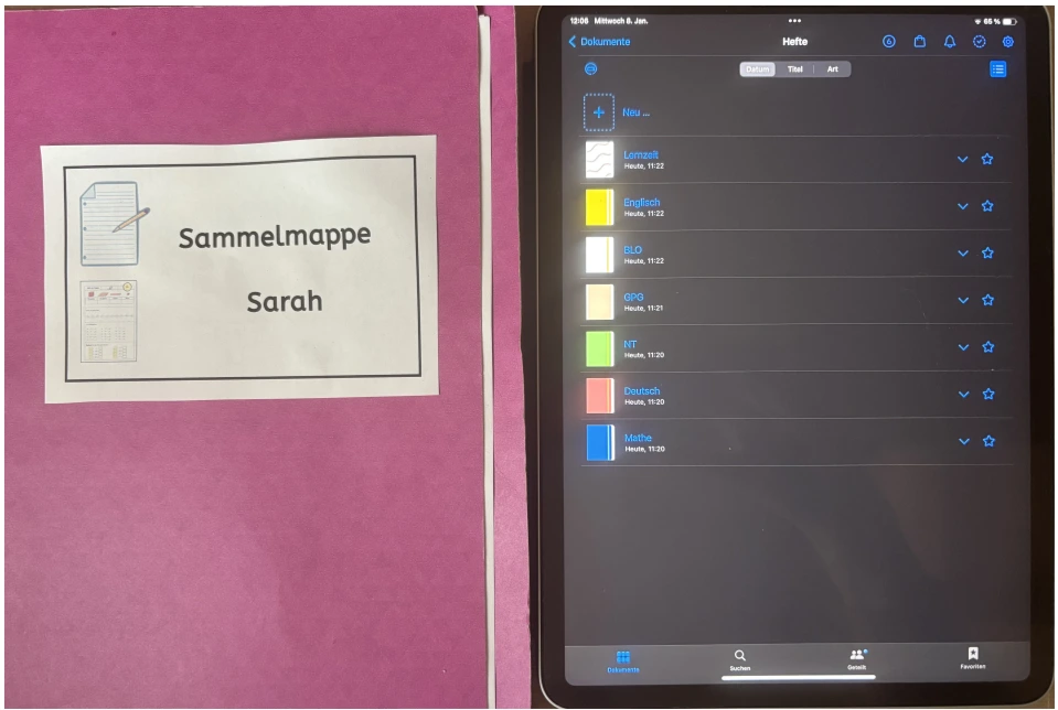 „An unserer Förderschule haben wir uns bewusst gegen eine rein digitale Heftführung entschieden. Die ausschließliche Arbeit mit dem Tablet bringt einige Herausforderungen mit sich: Der Bildschirm ist oft zu klein, um mehrere Anwendungen gleichzeitig komfortabel zu nutzen. Fenster müssen nebeneinander angeordnet oder ständig gewechselt werden.