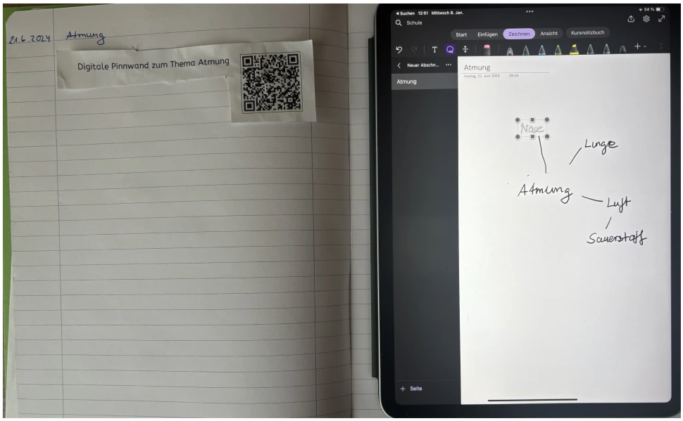Neue Inhalte werden im Heft festgehalten, während Übungsmaterialien dazu digital bereitgestellt werden.