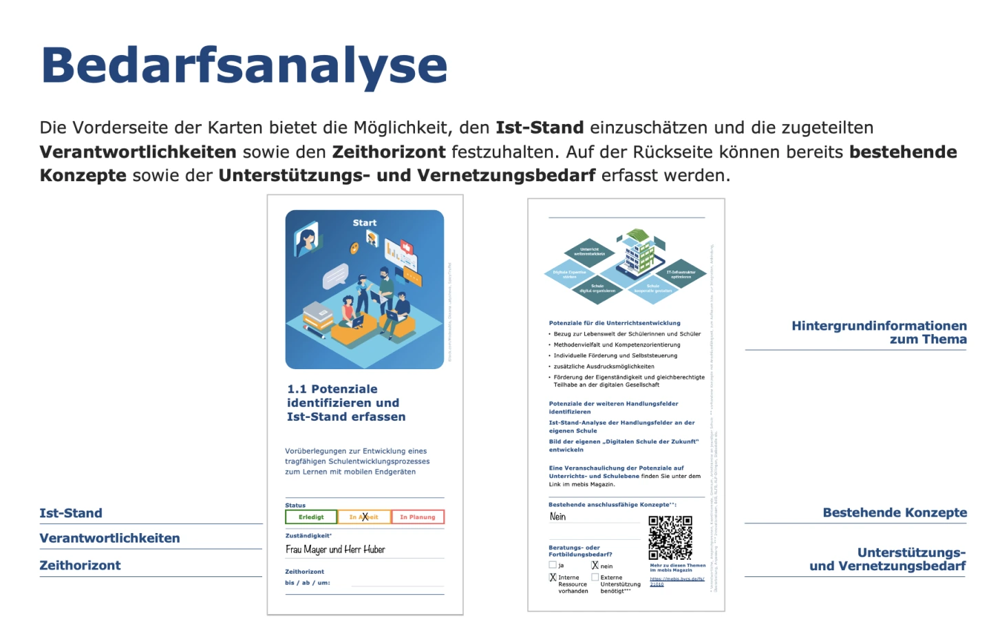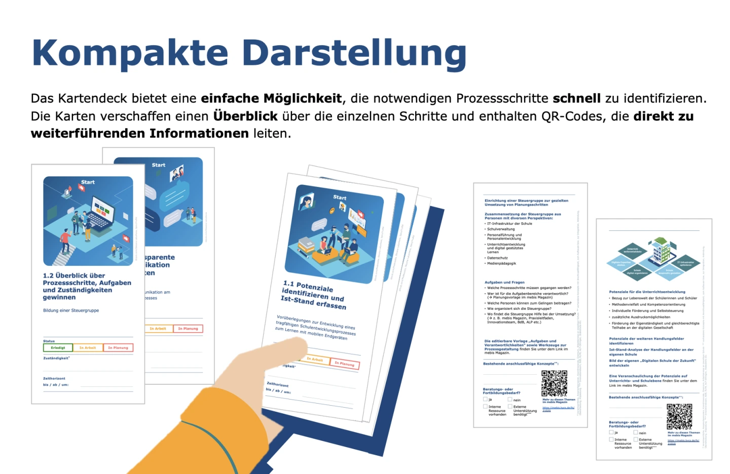 Zur Unterstützung dieser Prozessplanung wurde von Dr. Stefan Fischer (mBdB Gymnasien Obb.-West) zusammen mit den Innovationsteams der Gymnasien in Oberbayern (West, Muc, Ost) das vorliegende Kartendeck entwickelt und für die Förderschule angepasst. Dies kann sowohl zur Prozessbegleitung als auch als Hilfestellung für die Steuergruppen vor Ort eingesetzt werden.