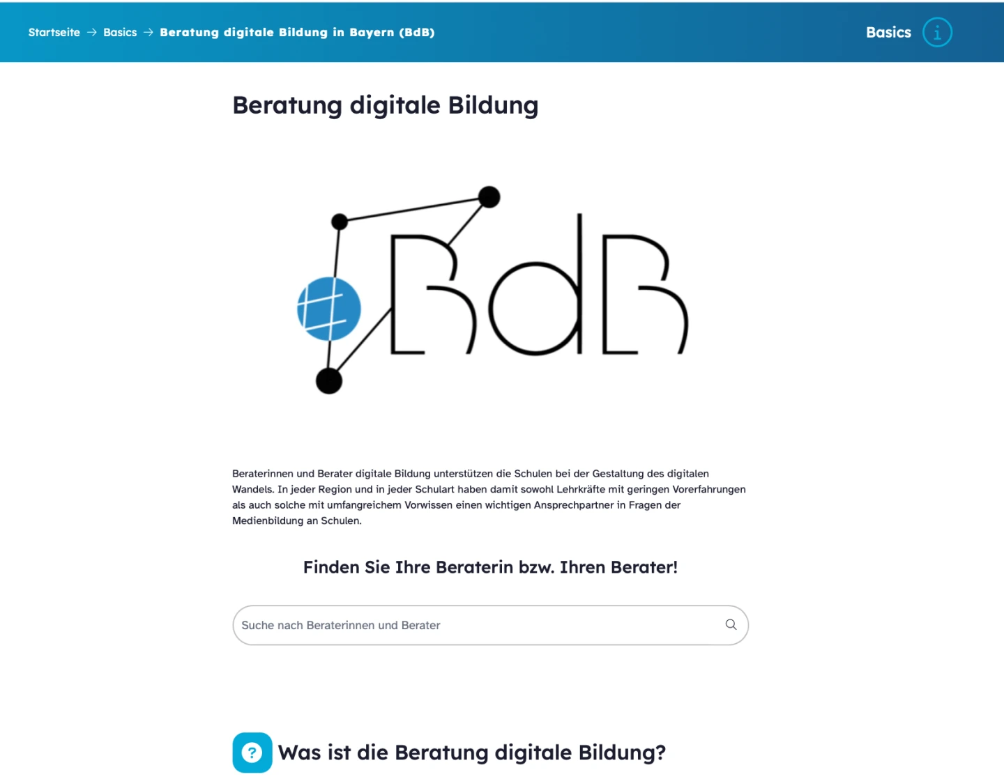 Die Berater digitale Bildung (BdB) kennen regionale sowie überregionale Angebote für die jeweilige Schulart. Kontaktdaten für Ihre Ansprechpartnerin bzw. Ihren Ansprechpartner finden Sie unter der BdB-Suche: