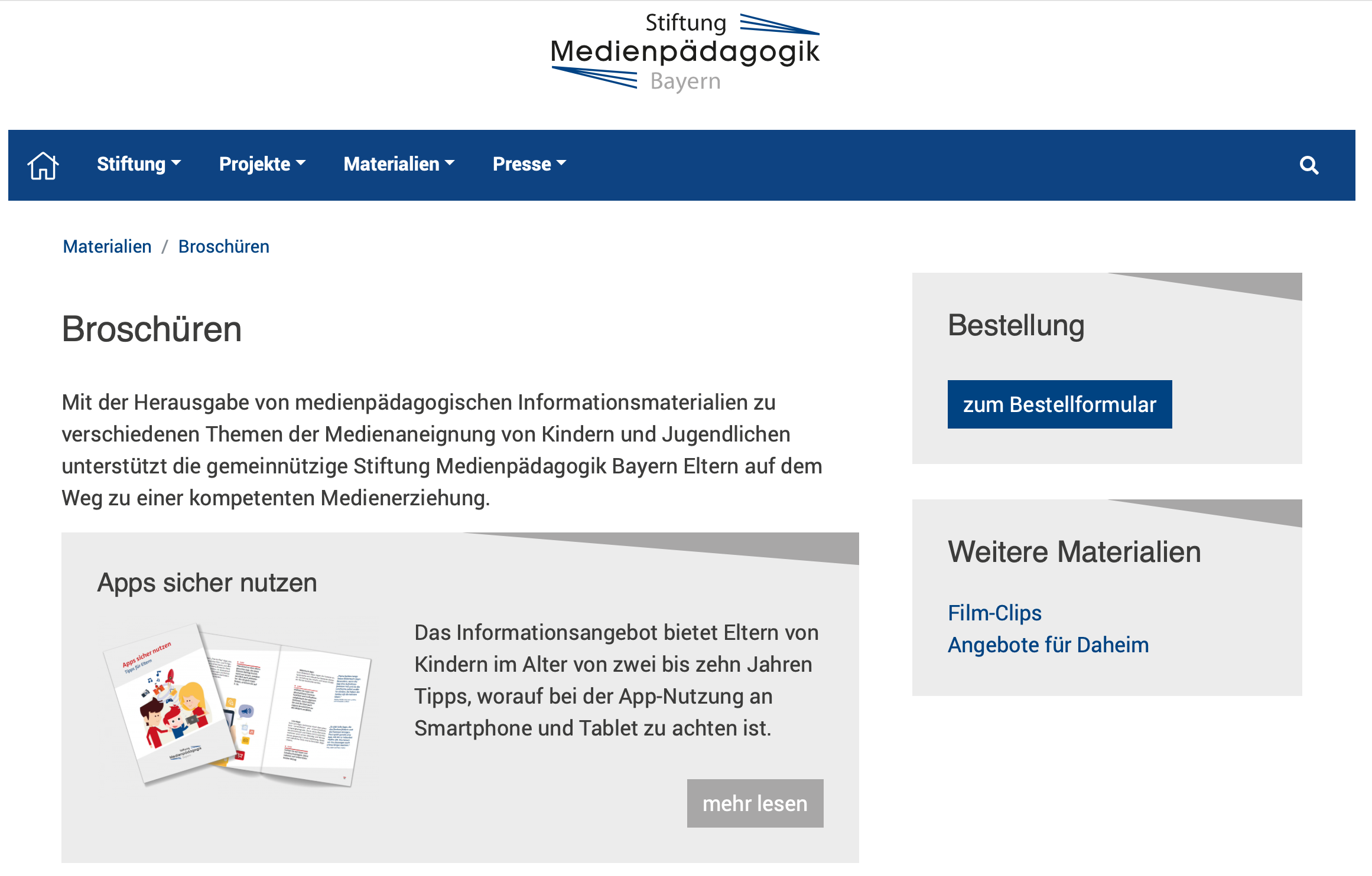 Die Stiftung Medienpädagogik stellt Broschüren für Eltern zu medienpädagogischen Themen zur Verfügung.