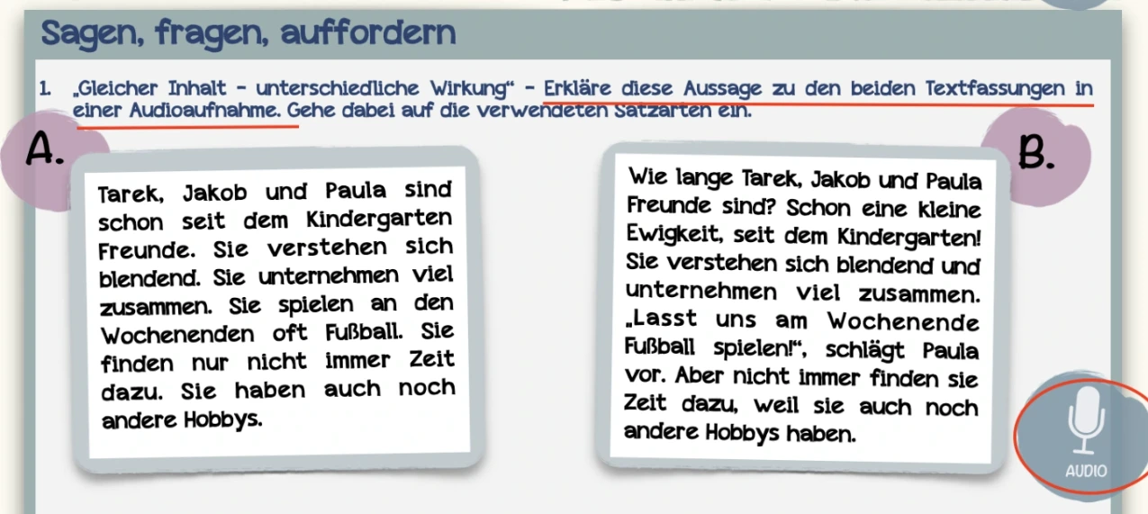 „Da meine Erfahrung mit digitalen Endgeräten zeigt, dass Arbeitsphasen mit zunehmender Dauer für die Lernenden immer anstrengender werden, versuche ich diese etwas umzudenken und durch viele, kurzschrittige Arbeitsaufträge zu rhythmisieren. Durch den Einsatz von unterschiedlichen Informationsdarbietungen in Form von Video, Audio und Text, verschiedenen Reflexionsimpulsen, Diskussionsanregungen sowie Feedbackmechanismen bleiben die Konzentration und das Interesse der Lernenden hoch.“