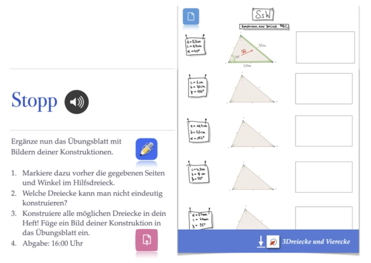 Durch die erweiterten Möglichkeiten der mobilen Endgeräte, wie beispielsweise die digitale Heftführung neben der analogen, ist es in diesem Unterrichtssetting sehr wichtig, klare und genaue Arbeitsaufträge für einen reibungslosen Unterrichtsablauf zu formulieren.