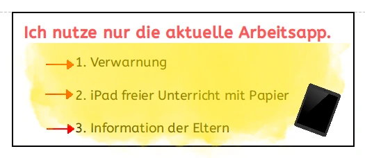 „Um einen strukturierten Unterricht zu gewährleisten, gilt die Regel: ‚Tablets werden nur für die aktuelle Aufgabe genutzt‘. Sobald ich eine neue Aufgabe stelle, gebe ich die entsprechenden Apps oder Webseiten vor. Sollte sich jemand nicht daran halten, greife ich auf ein gestaffeltes Konsequenzsystem zurück – von einer Ermahnung bis hin zur temporären Abgabe des Geräts. Dadurch entsteht eine klare und verlässliche Arbeitsatmosphäre.“