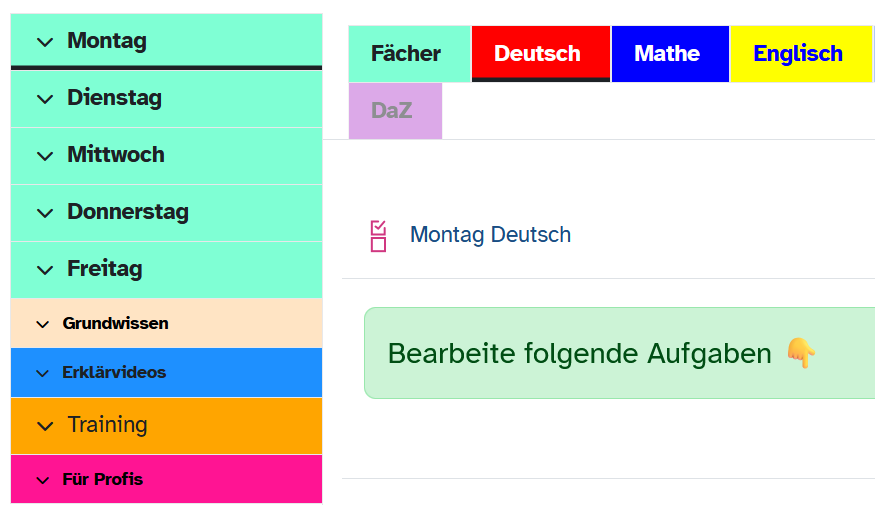 Digitale Endgeräte erfordern eine geeignete Struktur für die Bereitstellung und das Speichern von Unterrichtsmaterialien, welche einheitlich und durchgehend für den Unterricht verwendet werden sollte.
