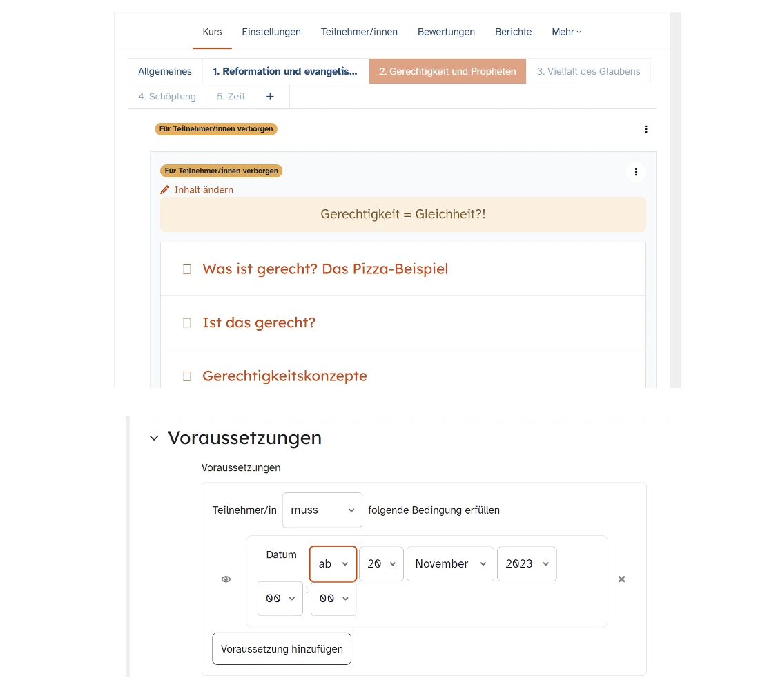 „Über mebis kann ich als Lehrkraft gezielt steuern, zu welchem Zeitpunkt einzelne Inhalte für die Lernenden zu sehen sind. So kann ich meinen Unterricht schon im Vorfeld frühzeitig vorbereiten, die Inhalte aber erst nach und nach freigeben. Man kann zudem technisch einstellen, wann einzelne Inhalte zu sehen sind. Das ist ein Vorteil für meine konkrete Stundenplanung. Je nachdem, welche Voraussetzungen ich einstelle, sind Inhalte und Aufgaben erst zu einer bestimmten Zeit oder erst, wenn andere Aufgaben gelöst wurden, sichtbar."