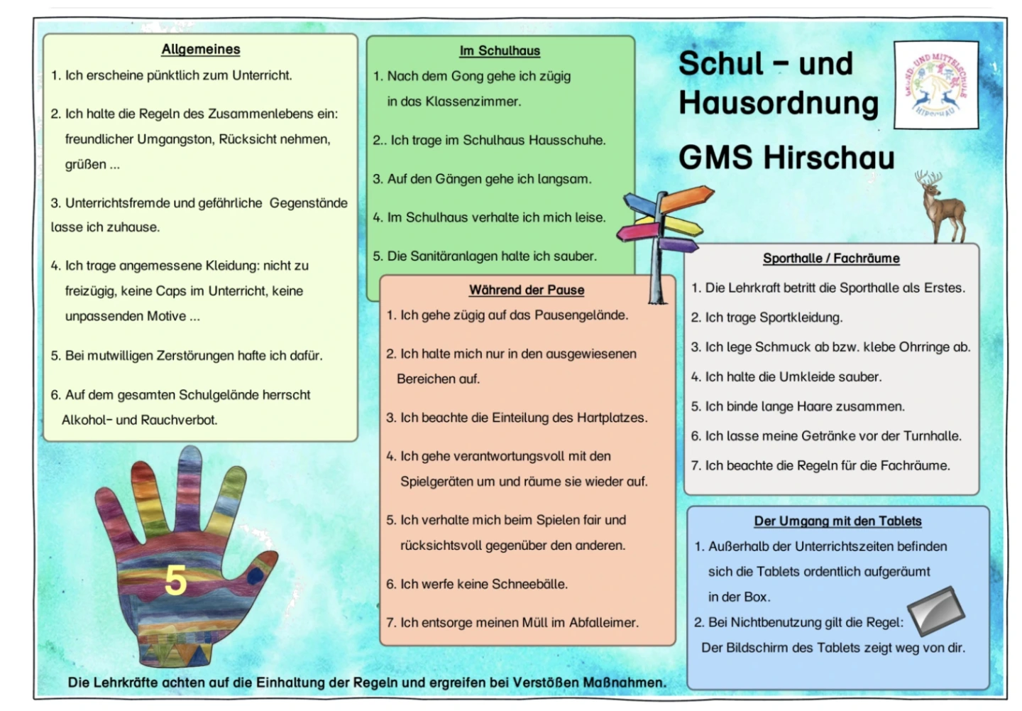 Die Regeln gelten für alle Klassen und sind in jedem Raum präsent.