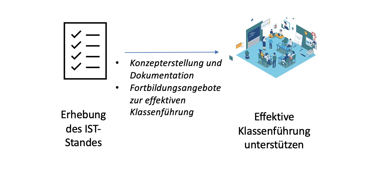Die Dokumentation der verlässlichen Rahmenbedingungen ist ein wichtiger Schritt, um neue Lehrkräfte bei der Anpassung der Klassenführung an eine veränderte Ausstattung mit mobilen Schülergeräten zu begleiten. Idealerweise enthält die schulinterne Fortbildungsplanung kontinuierliche Bausteine zum Thema Klassenführung.